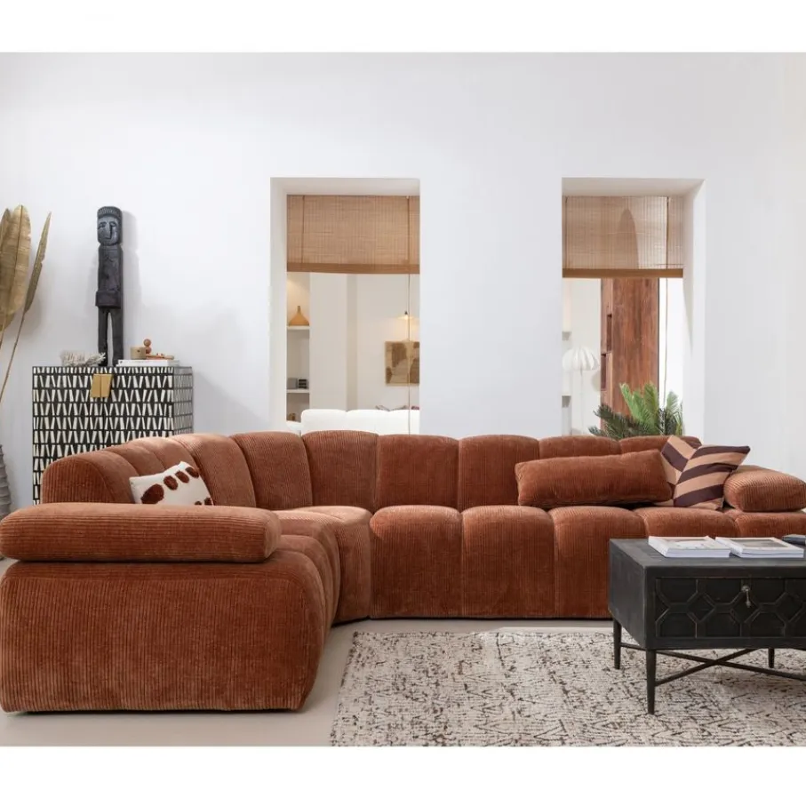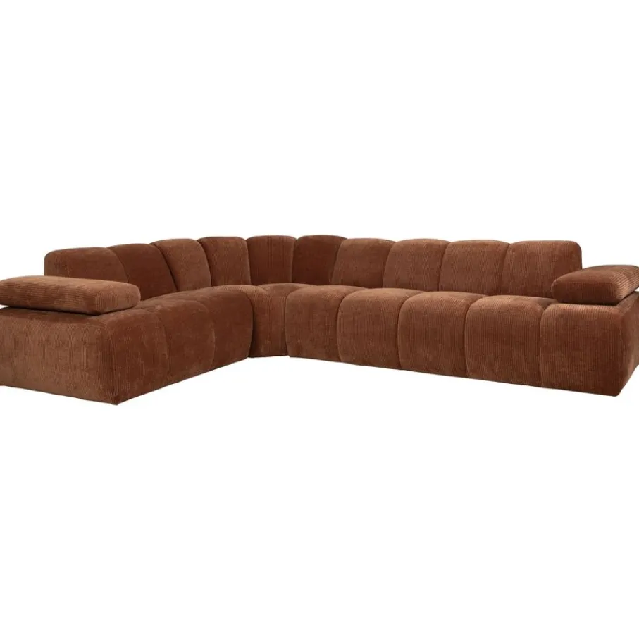 De bank is bekleed met een moderne ribstof met een zachte grip en luxe uitstraling. Deze stof heeft een ribbelstructuur en is gemaakt van 100% polyester. Het heeft een Martindale van 80.000, wat betekent dat de stof geschikt is voor intensief woongebruik. De ribstof in kleur Rust Brown heeft een roestbruine kleur.