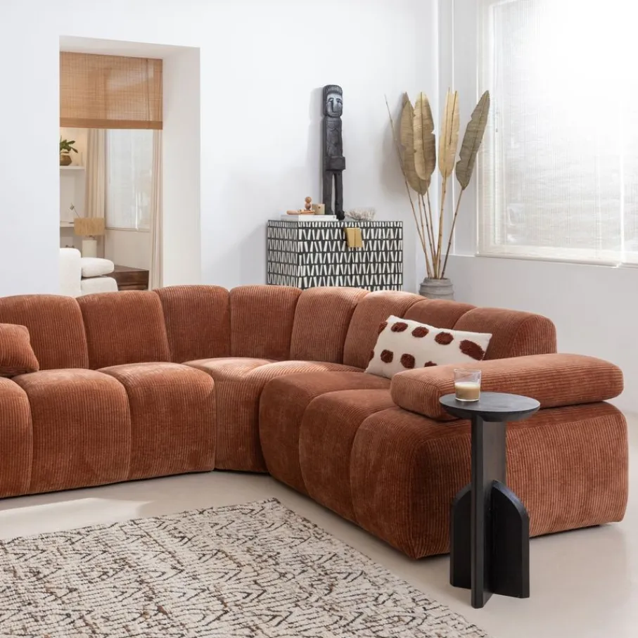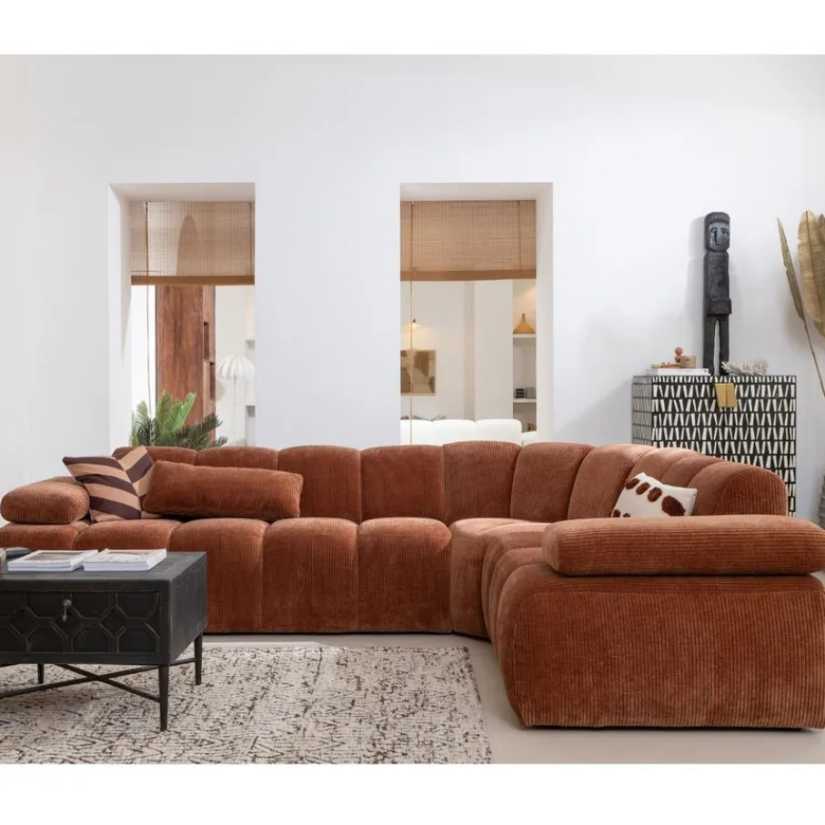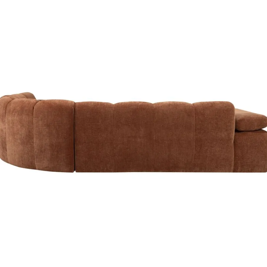 De bank is bekleed met een moderne ribstof met een zachte grip en luxe uitstraling. Deze stof heeft een ribbelstructuur en is gemaakt van 100% polyester. Het heeft een Martindale van 80.000, wat betekent dat de stof geschikt is voor intensief woongebruik. De ribstof in kleur Rust Brown heeft een roestbruine kleur.