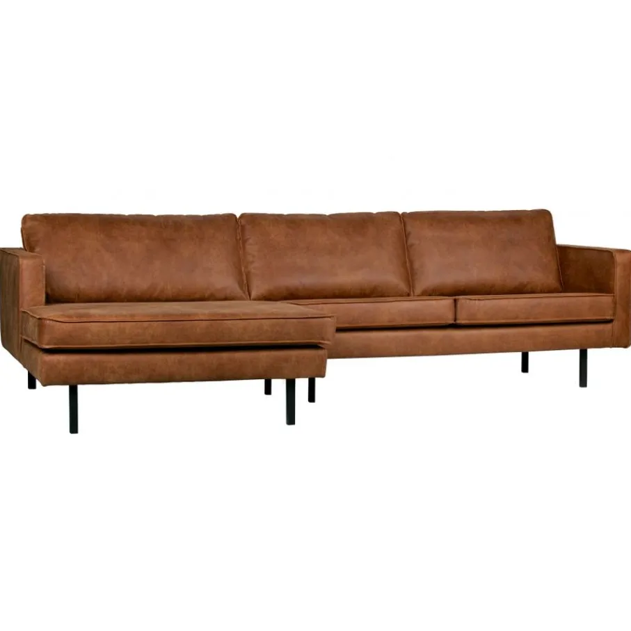 Deze Rodeo bank is bekleed met eco leder in cognac bruine kleur. Het duurzame materiaal heeft een onderlaag van gerecyclede leervezels (70%) met er bovenop een afdeklaag van polyester (30%) die het leer beschermt en oneffenheden voorkomt. Hierdoor wordt het een stevige combinatie stof die ook zeer kleurvast is. Tijdens het gebruik zal het uiterlijk en de structuur van de stof zijn natuurlijke kenmerken meer laten zien.
