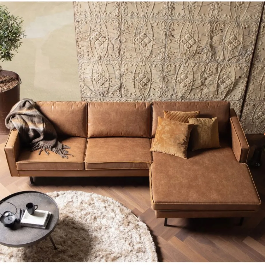 - De bekleding van eco-leder geeft de bank een robuuste en moderne look die je interieur direct een stoere touch geeft.