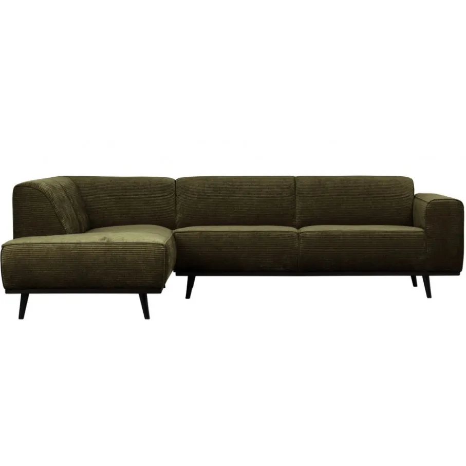 De Statement bank is bekleed met Brama ribstof in een warme groene kleur. Dit is een platte ribstof van zachte chenille garens met een fraaie vleug die zorgt voor mooie kleurnuances en een subtiele glans. De geweven stof is van 53% polyester en 47% polyacryl, een sterke en gebruiksvriendelijke stof. Er kan een lichte zitspiegel ontstaan op de favoriete zitplekken.