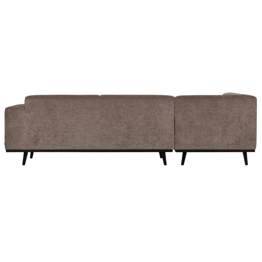Deze Statement hoekbank is bekleed met ribstof in een elegante taupe kleur. Dit is een platte ribstof van zachte chenille garens met een fraaie vleug, die zorgt voor mooie kleurnuances en een subtiele glans. De geweven stof is van 53% polyester en 47% polyacryl, een sterke en gebruiksvriendelijke stof. Er kan een lichte zitspiegel ontstaan op de favoriete zitplekken.