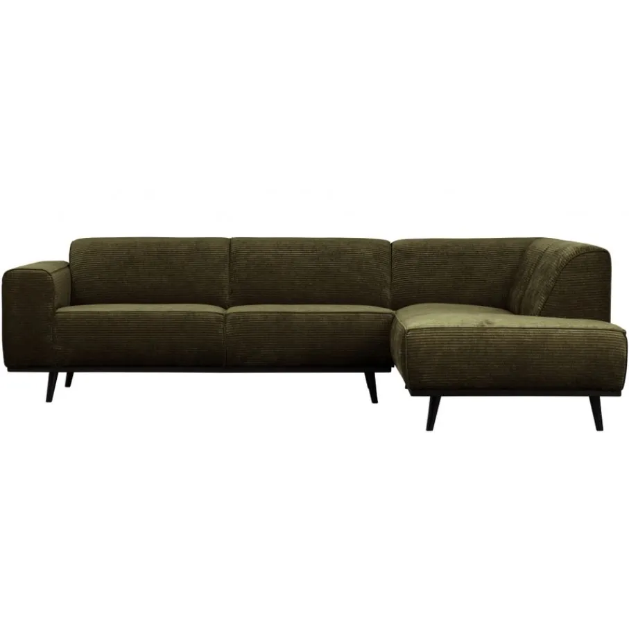 De Statement bank is bekleed met Brama ribstof in een warme groene kleur. Dit is een platte ribstof van zachte chenille garens met een fraaie vleug die zorgt voor mooie kleurnuances en een subtiele glans. De geweven stof is van 53% polyester en 47% polyacryl, een sterke en gebruiksvriendelijke stof. Er kan een lichte zitspiegel ontstaan op de favoriete zitplekken.