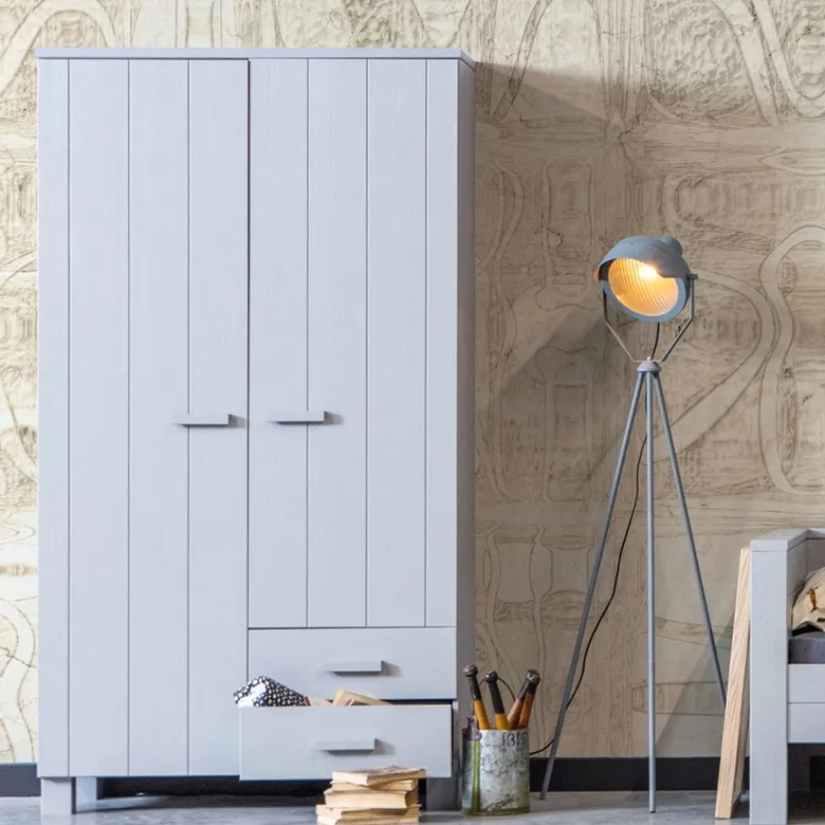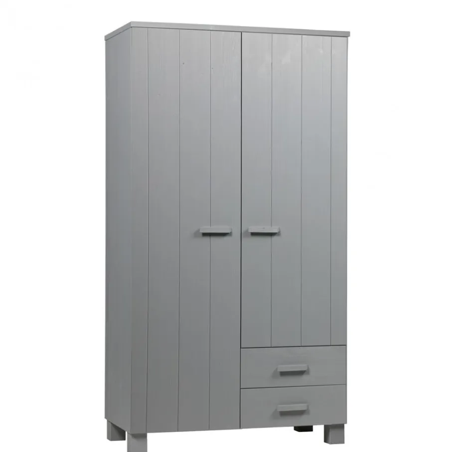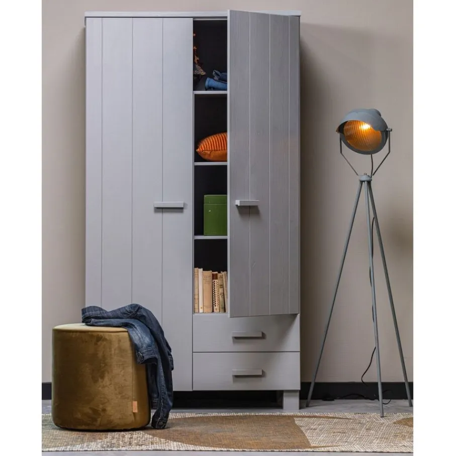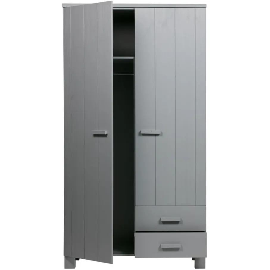 Kledingkast Dennis is, inclusief de handgrepen, gemaakt van grenen met een geborstelde afwerking. Hierdoor worden oneffenheden, kleine scheurtjes en knoesten extra zichtbaar. Allemaal kenmerken van doorleefd hout en dit maakt ieder exemplaar uniek!