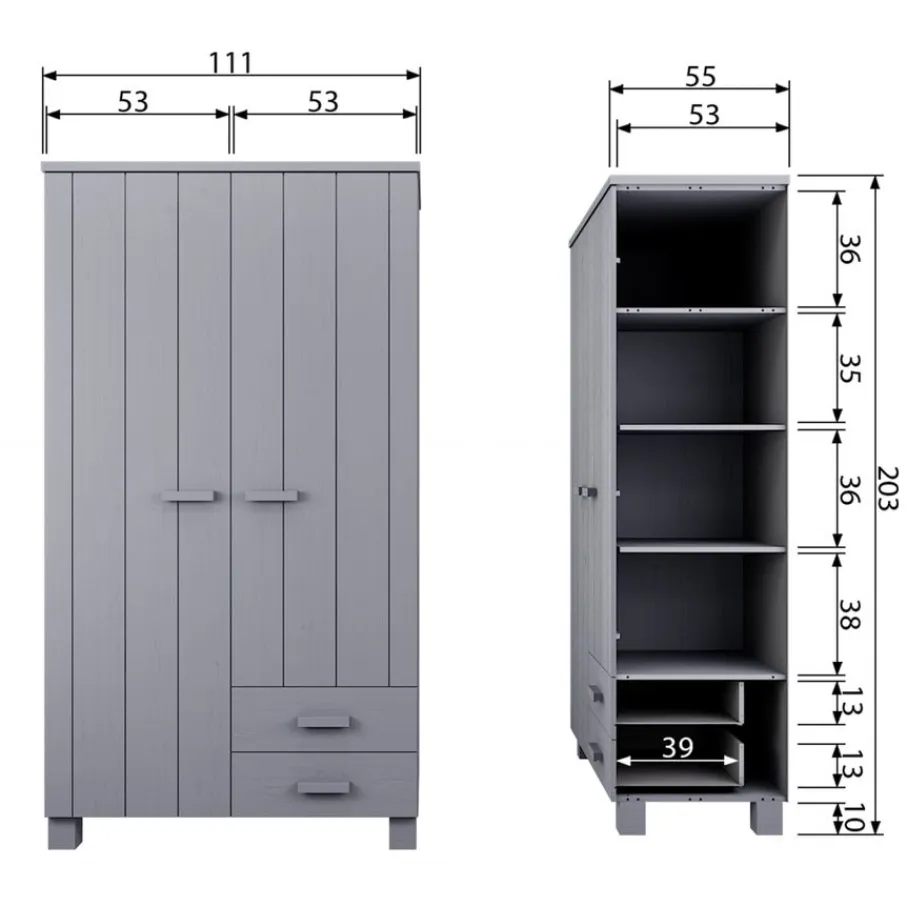 - Houd al je kleding perfect georganiseerd dankzij de slimme indeling met een handige roede, meerdere legplanken én twee ruime lades.
