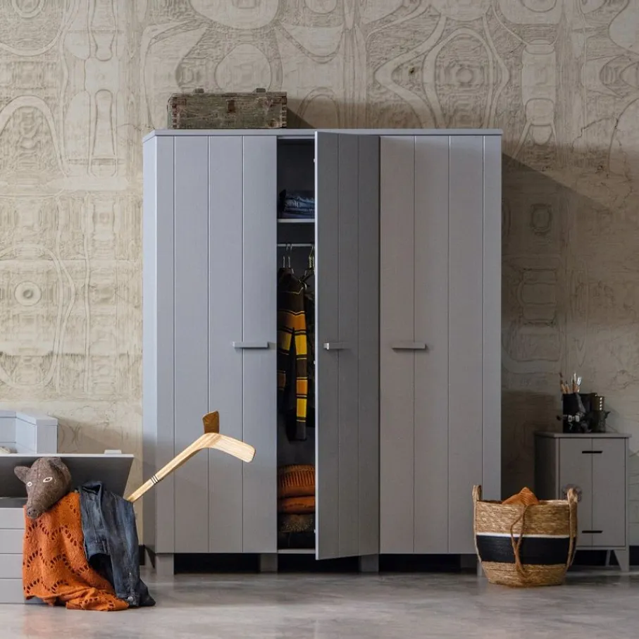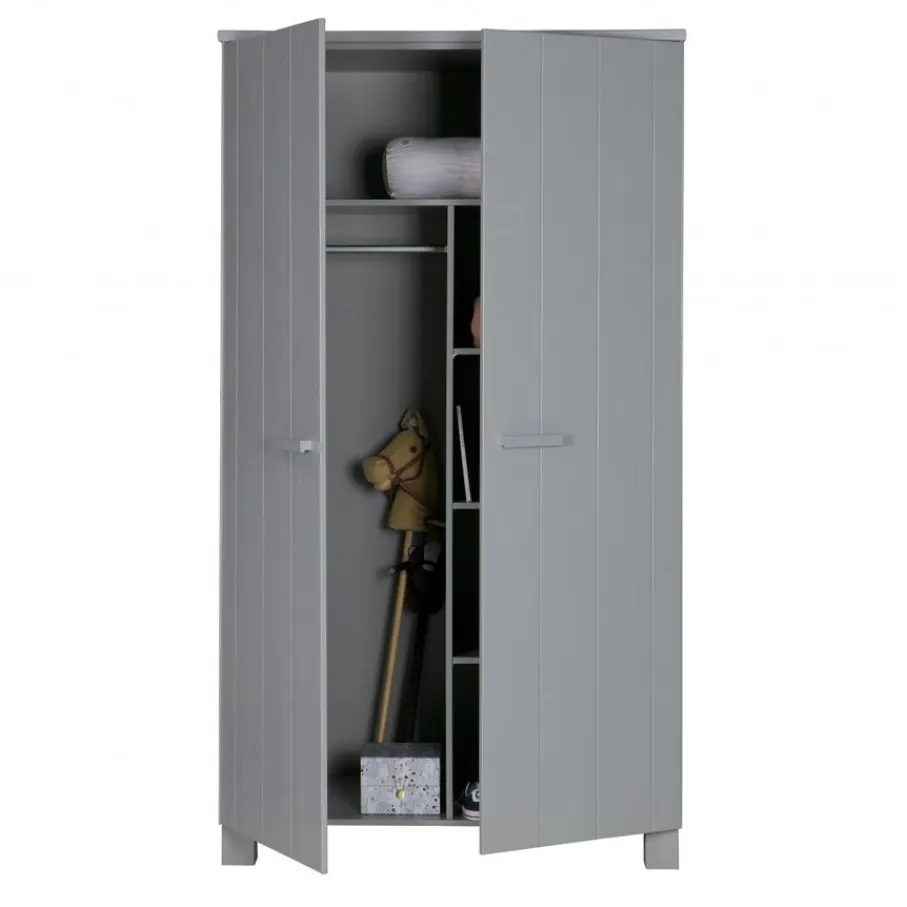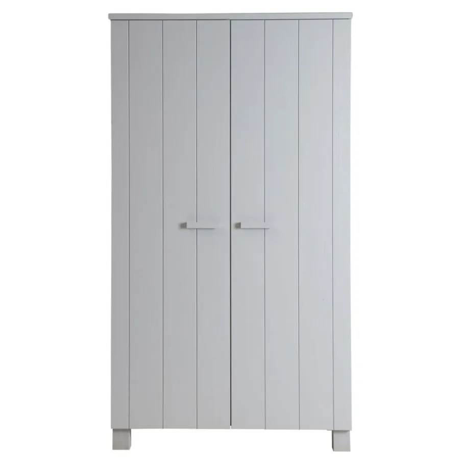 Kledingkast Dennis is, inclusief de handgrepen, gemaakt van grenen met een geborstelde afwerking. Hierdoor worden oneffenheden, kleine scheurtjes en knoesten extra zichtbaar. Allemaal kenmerken van doorleefd hout en dit maakt ieder exemplaar uniek!