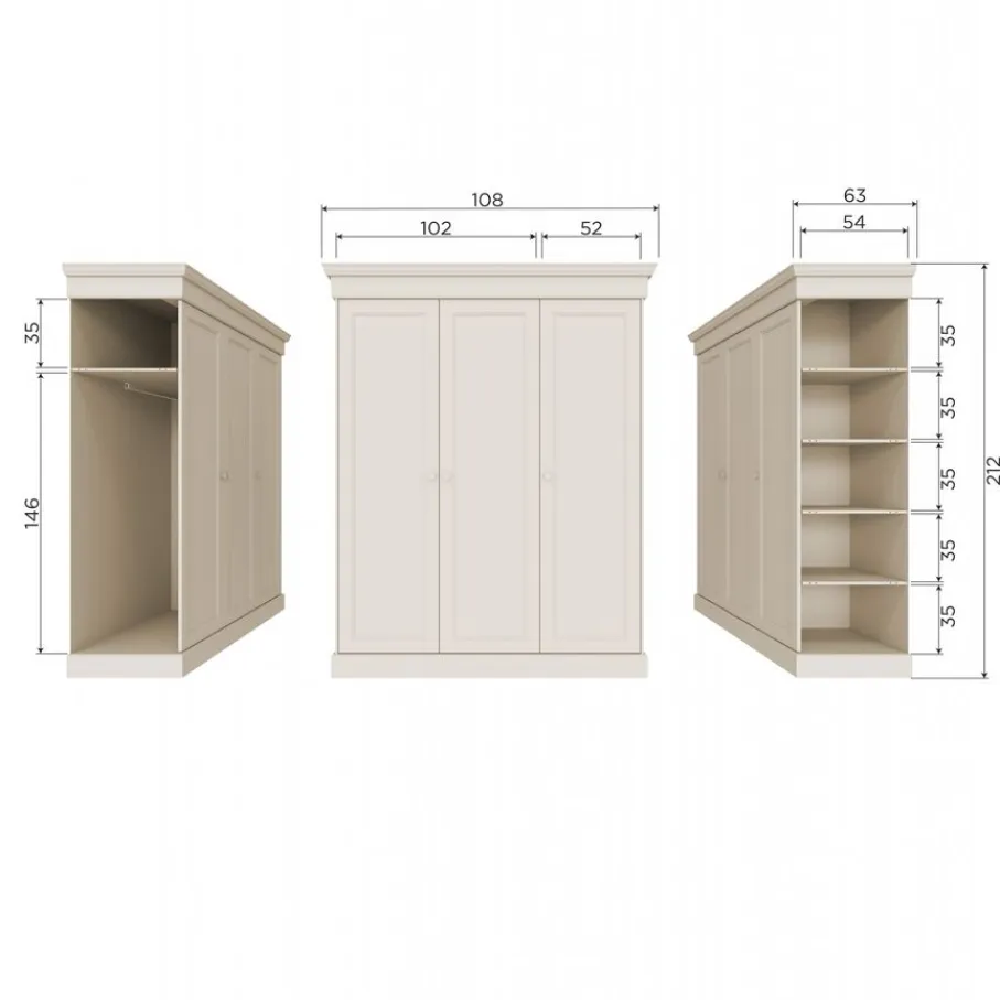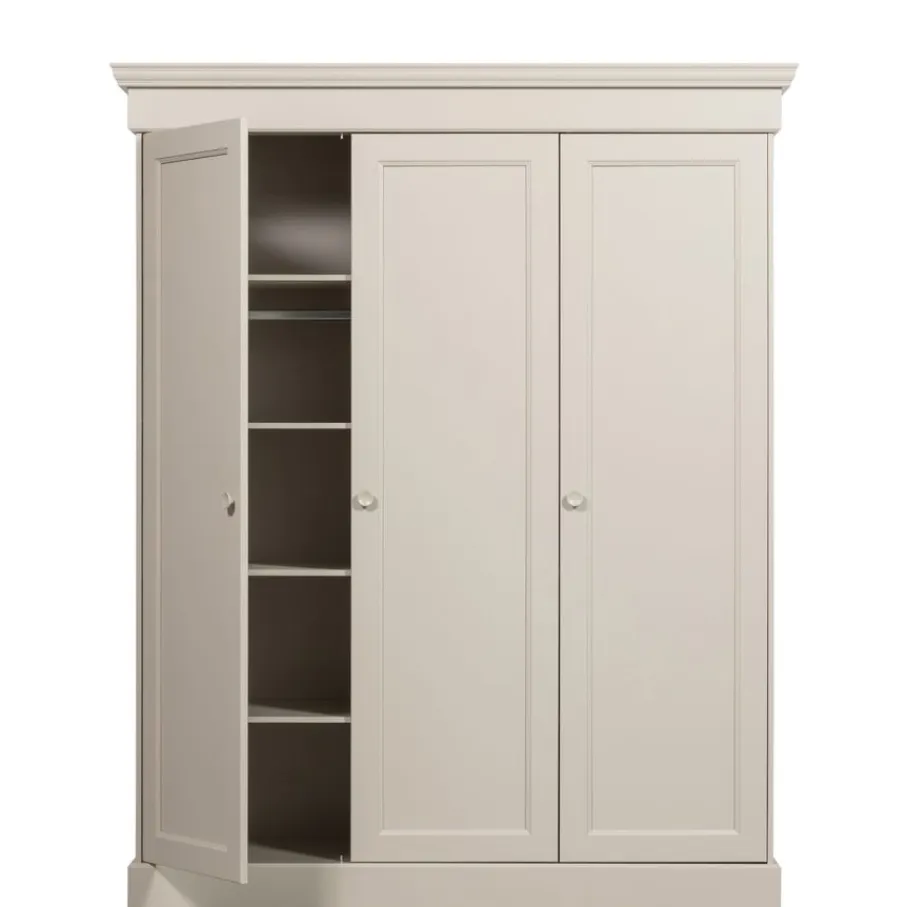 Deze stijlvolle kast heeft lekker veel opbergruimte met een hang en leg gedeelte. Het hanggedeelte is 101 cm breed en 146 cm hoog. Aan de rechterkant zitten handige opbergvakken van 52 cm breed en 35 cm hoog. Het is mogelijk om van deze kast een volledige legkast te maken. Hiervoor is er een Olivia set legplanken leverbaar. Met deze plankenset wordt het hang gedeelte van de kledingkast opgevuld met drie planken.