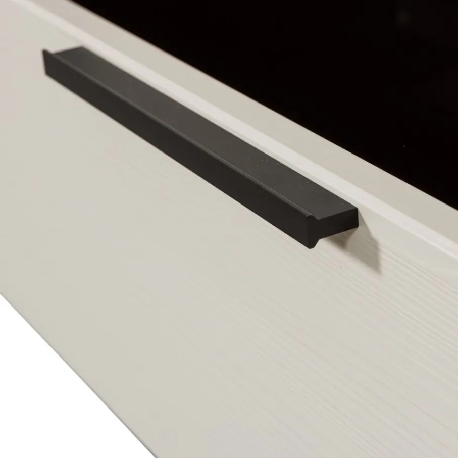 - Creëer een luchtige sfeer met het elegante zwarte metalen onderstel dat de kast laat zweven. Zo lijkt je kamer direct groter en ruimtelijker!