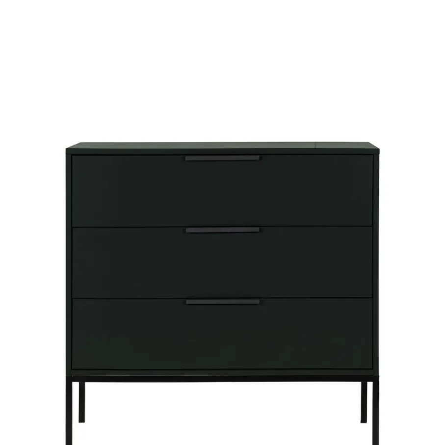 - Voeg een luchtig en elegant accent toe met het slimme zwarte metalen onderstel, waardoor de ladekast als het ware boven de grond zweeft!