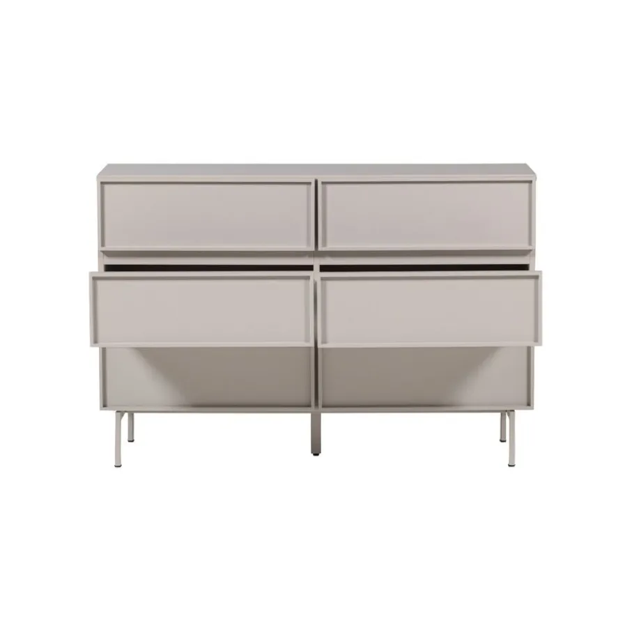 - De elegante ton-sur-ton look, met de zandkleurige metalen poten, geeft deze ladekast een uniek en verfijnd karakter.