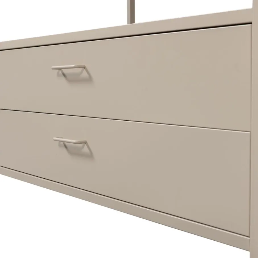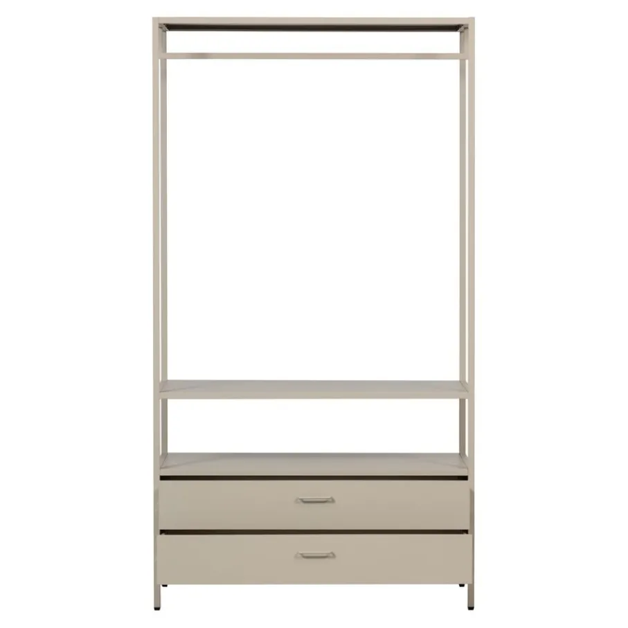 - Geef je slaapkamer een stijlvolle boost met deze elegante zandkleurige kledingkast, geheel van stevig metaal.