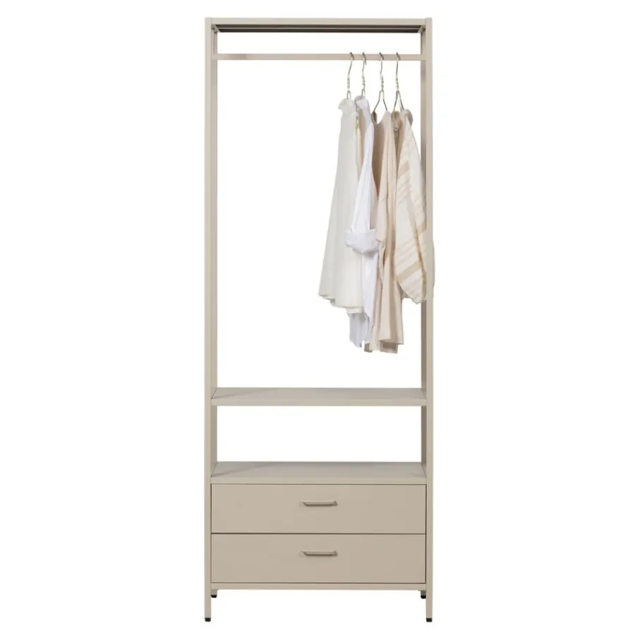 - Voor wie graag alles uit het zicht opbergt, is het goed om te weten dat dit een open kledingrek is.