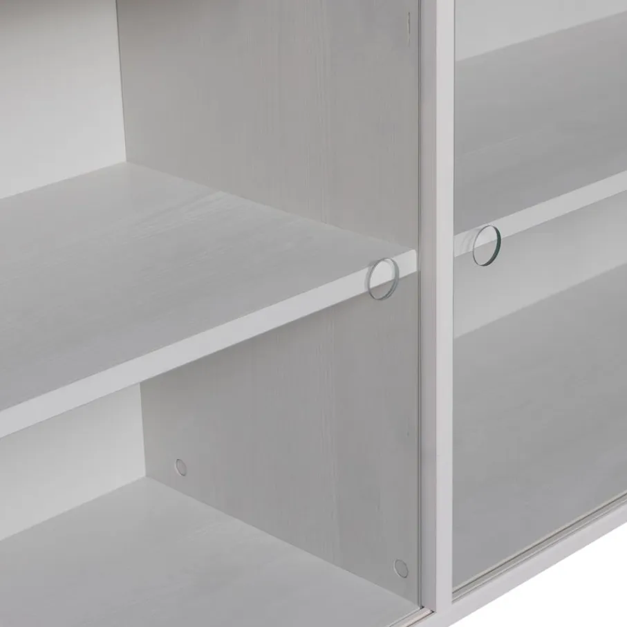 - Pronk met je mooiste schatten achter de twee elegante glazen schuifdeuren, terwijl de rest van je spullen netjes uit het zicht blijven.