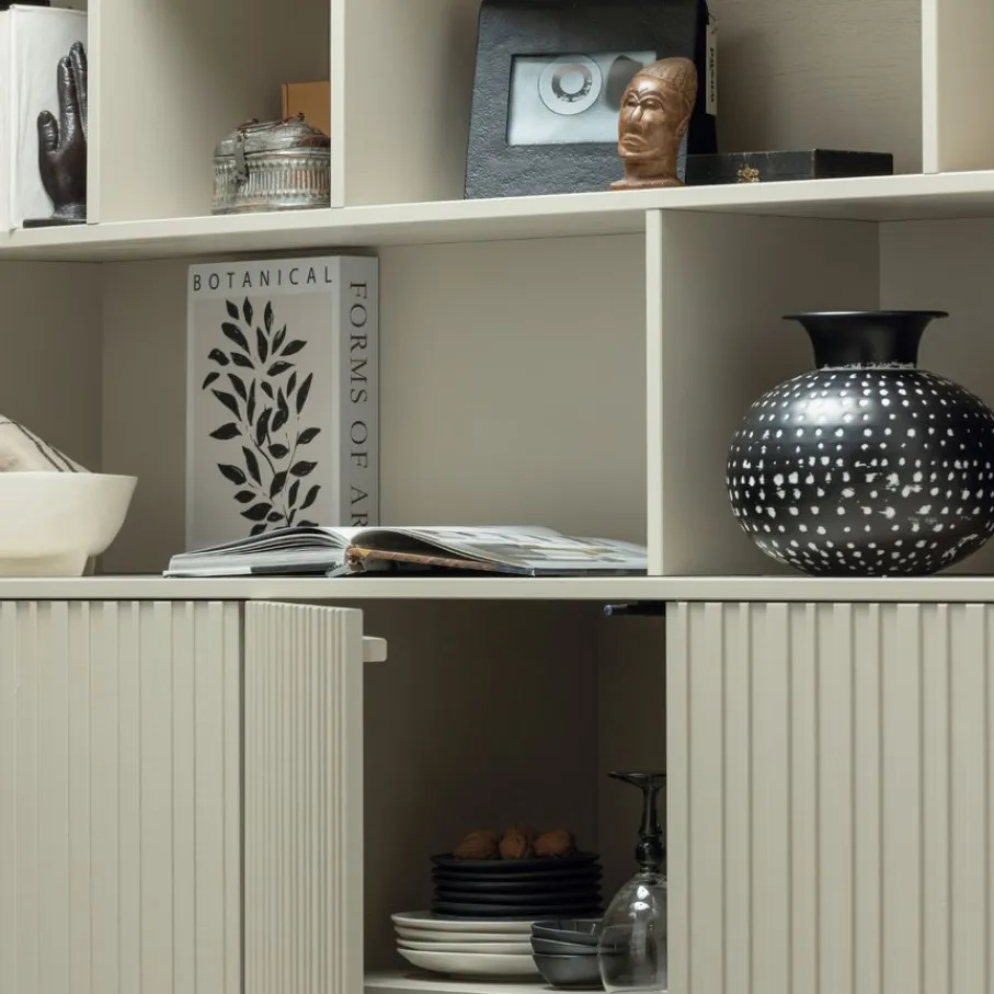 - Maak van jouw dressoir een complete wandkast en creëer zo een indrukwekkend meubelstuk in je woonkamer.