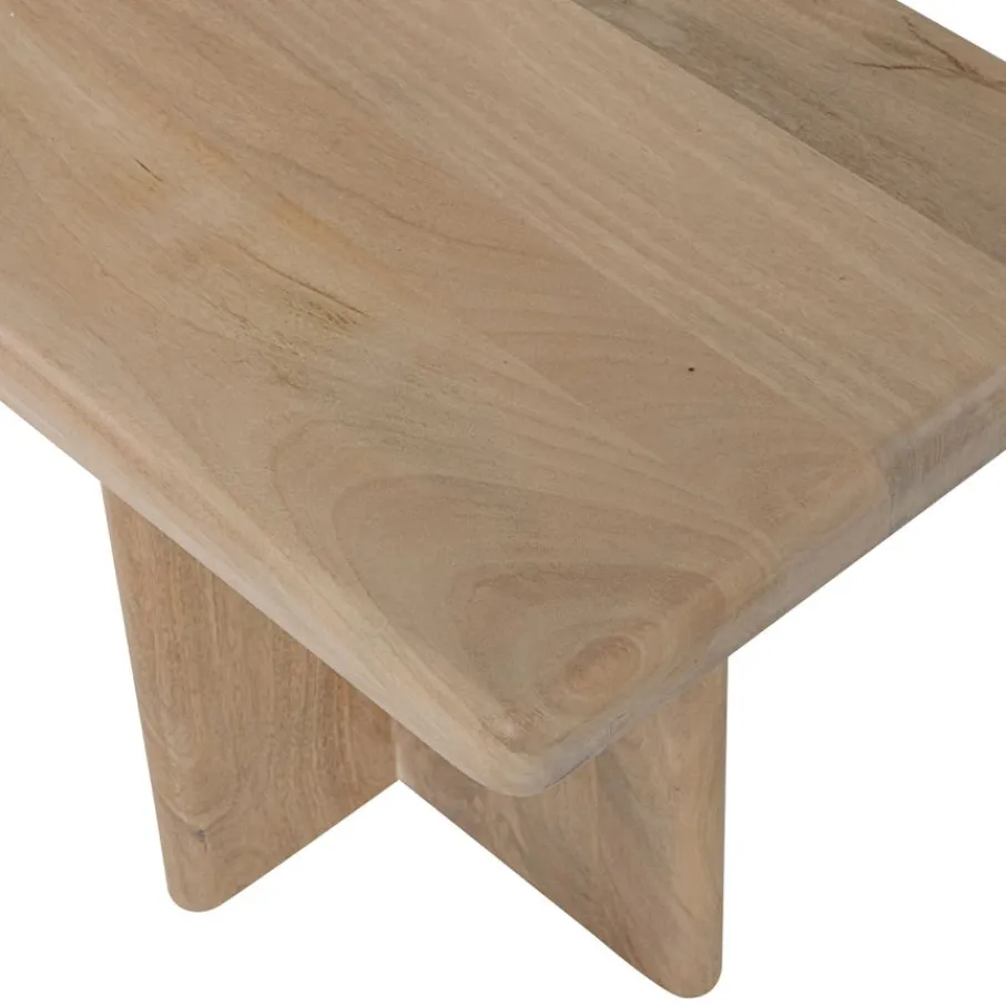 - Natuurlijke houtstructuur: Het mangohout heeft een levendige uitstraling met zichtbare nerven en knoesten, wat zorgt voor uniek karakter, maar is anders dan een volledig glad en egaal oppervlak.