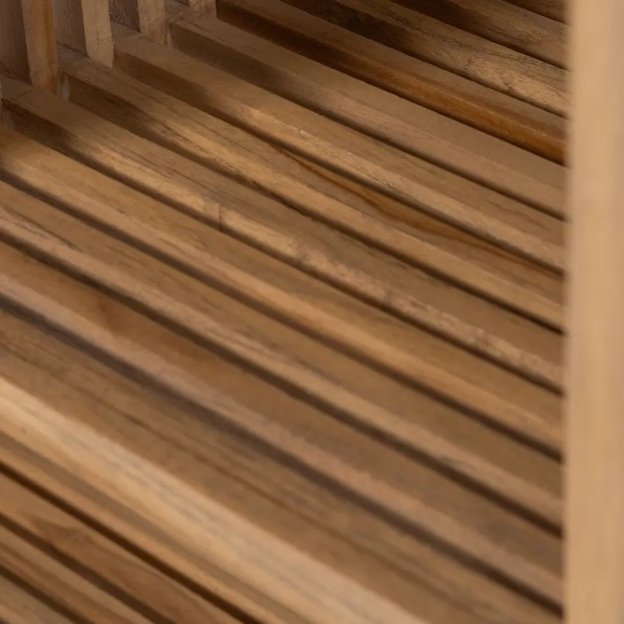 - Specifieke bruintint: De warme bruine kleur van het teakhout creëert direct sfeer, maar is minder neutraal dan een lichtere tint als je vaak je interieurkleuren verandert.