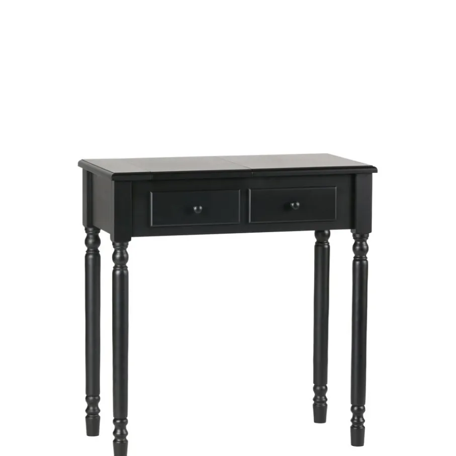 Romy heeft een bladoppervlak van 75×38 cm. De breedte van de klapspiegel is 28 cm. Onder de spiegel zit een verborgen vakkenverdeling voor het opbergen van bijvoorbeeld make-up of sieraden. Ook heeft Romy twee lades voor nog meer opbergmogelijkheid.