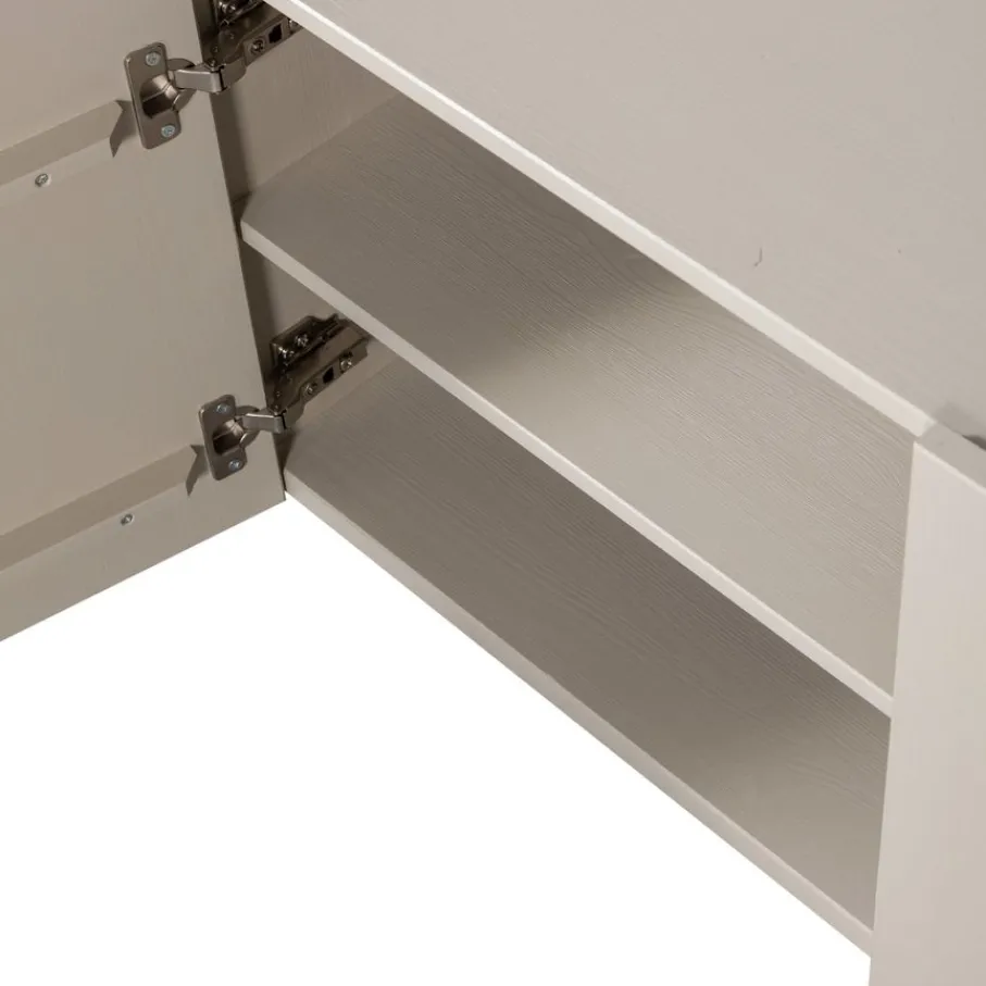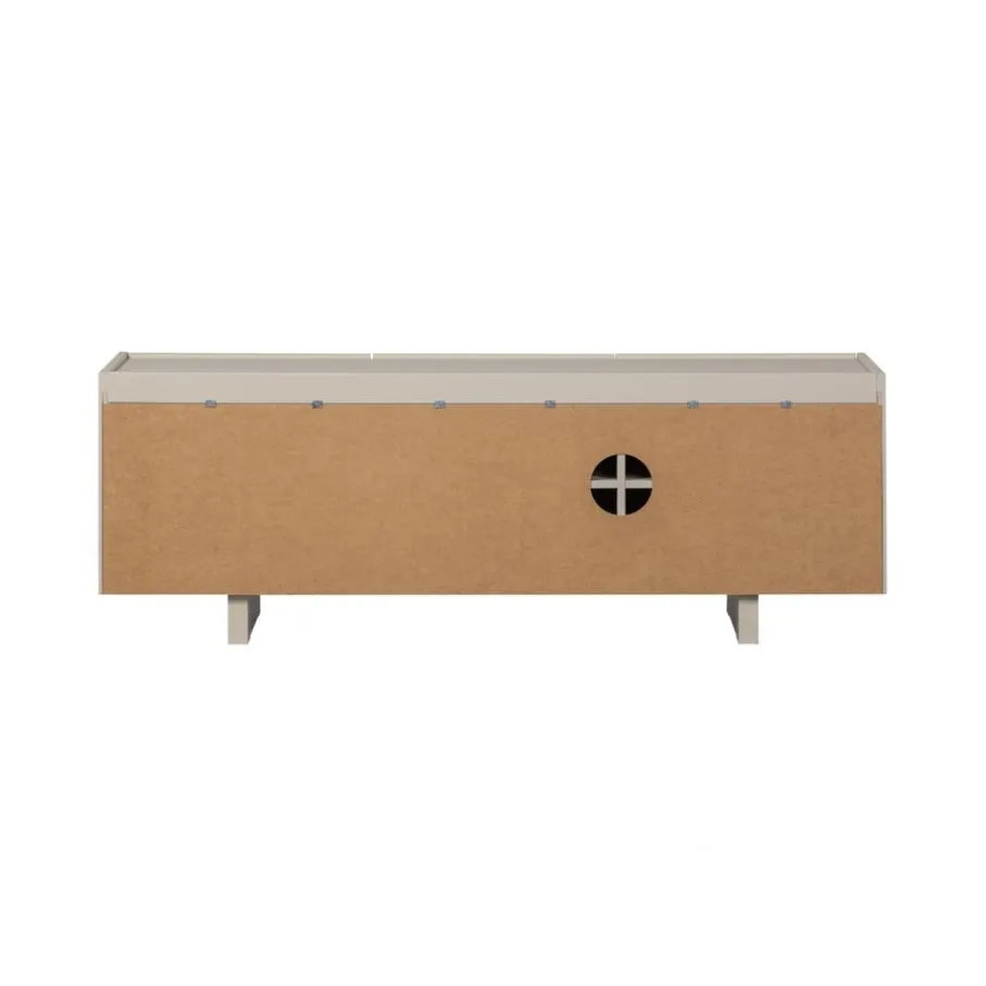Het tv-meubel heeft een enkel- en een dubbeldeurs vak, met in totaal 3 deuren. In ieder vak zit een plank ter vakverdeling, waardoor er vakken ontstaan van 48 cm breed en 19 cm hoog. Elke plank heeft een draaggewicht van 15 kg.