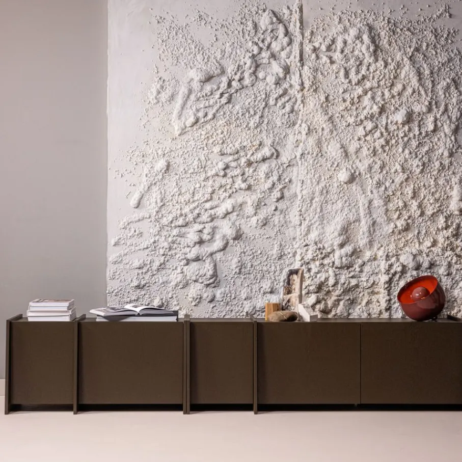 - Houd je woonkamer heerlijk netjes en opgeruimd door al je spullen uit het zicht op te bergen achter de twee greeploze deuren.