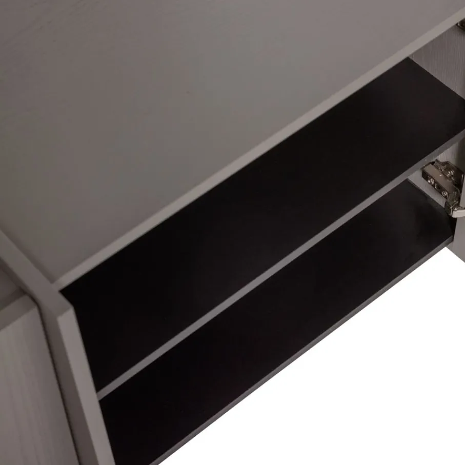 Achter de twee deuren bevinden zich twee legplanken, die de kast in vier handige opbergvakken verdelen. De legplanken zijn gemaakt van spaanplaat en melamine. Aan de achterzijde is een kabeldoorvoer aangebracht, zodat snoeren netjes uit het zicht blijven.