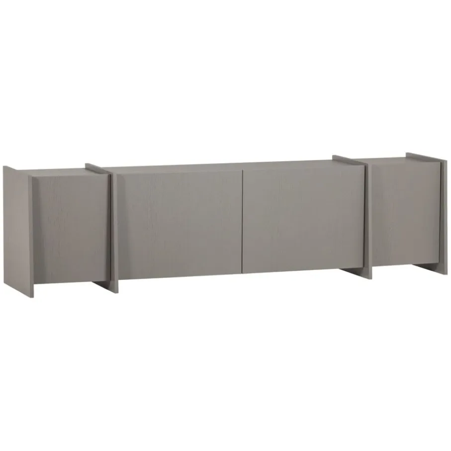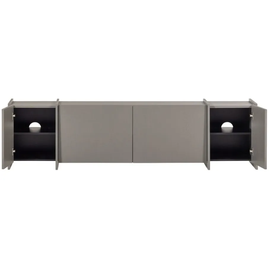 Achter de vier deuren vind je volop opbergruimte, verdeeld over drie compartimenten. Het middelste, brede compartiment is uitgerust met een legplank en een handige kabeldoorvoer in de achterwand, ideaal voor je media-apparatuur. De twee buitenste compartimenten hebben elk ook een legplank. Het meubel heeft een totaal draaggewicht van 45 kg.