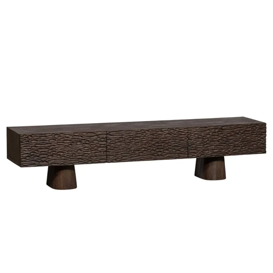 - Geef je interieur direct een warme en speelse uitstraling dankzij de opvallende textuur en robuuste poten van dit tv-meubel.