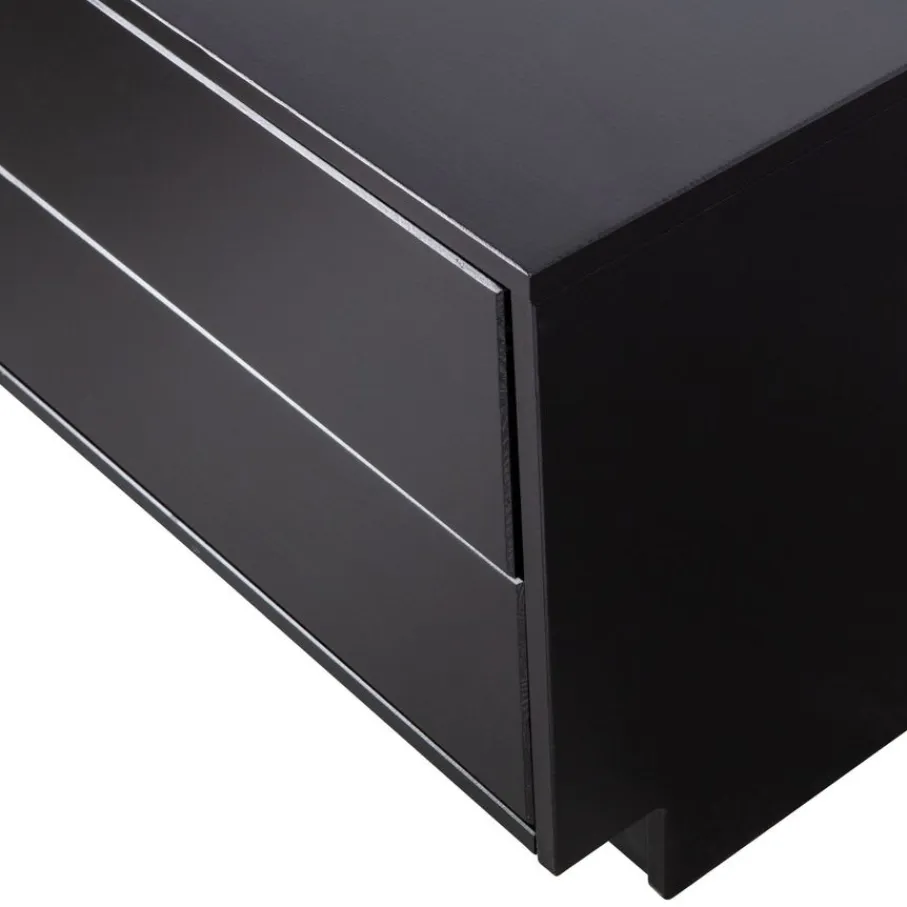 - Geef je woonkamer een stijlvolle touch met dit tv-meubel, dankzij de strakke vormgeving en greeploze lades.
