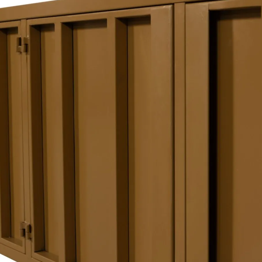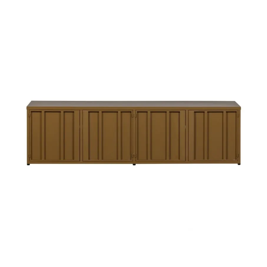 - Geef je interieur direct een warme en stijlvolle upgrade met dit unieke tv-meubel van metaal in een aardse honinggele tint.