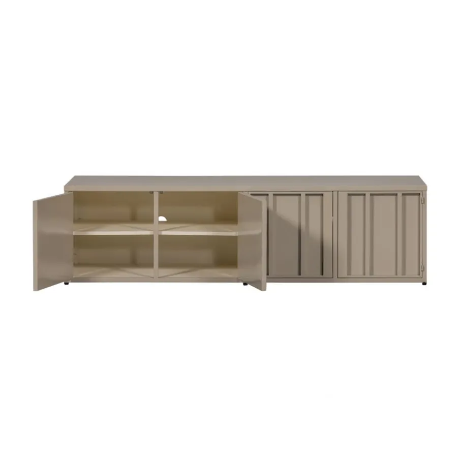 - Geef je interieur direct een stijlvolle upgrade met dit prachtige tv-meubel van metaal, afgewerkt in een elegante zandkleur.