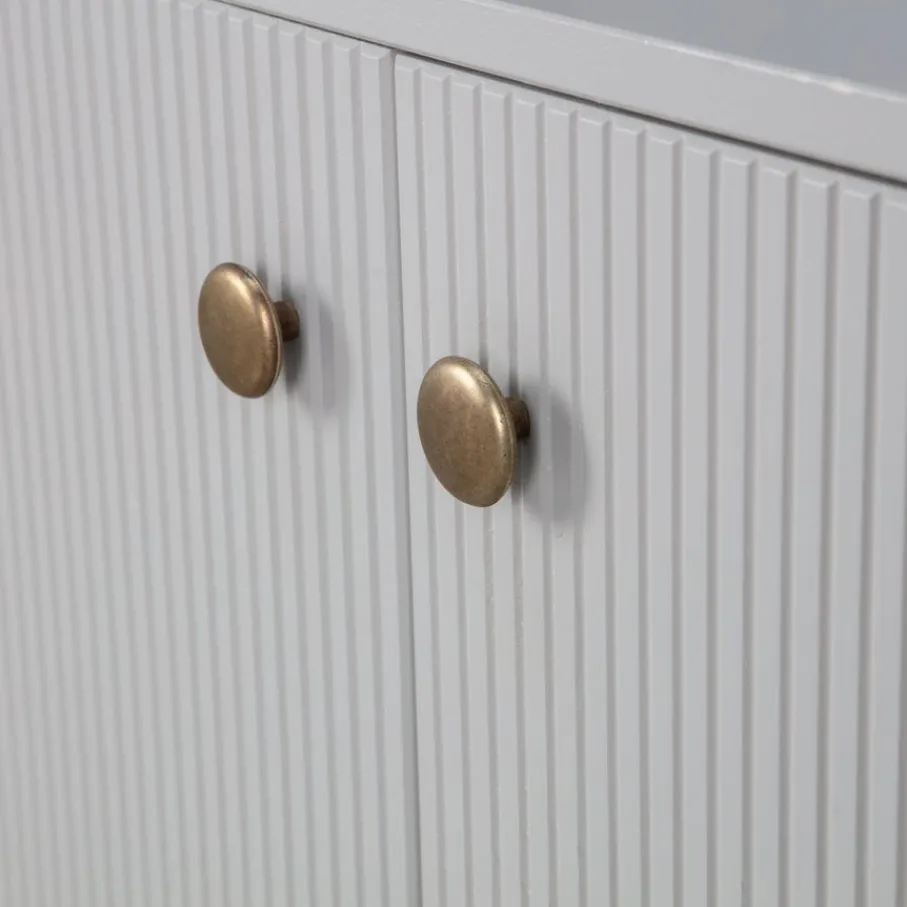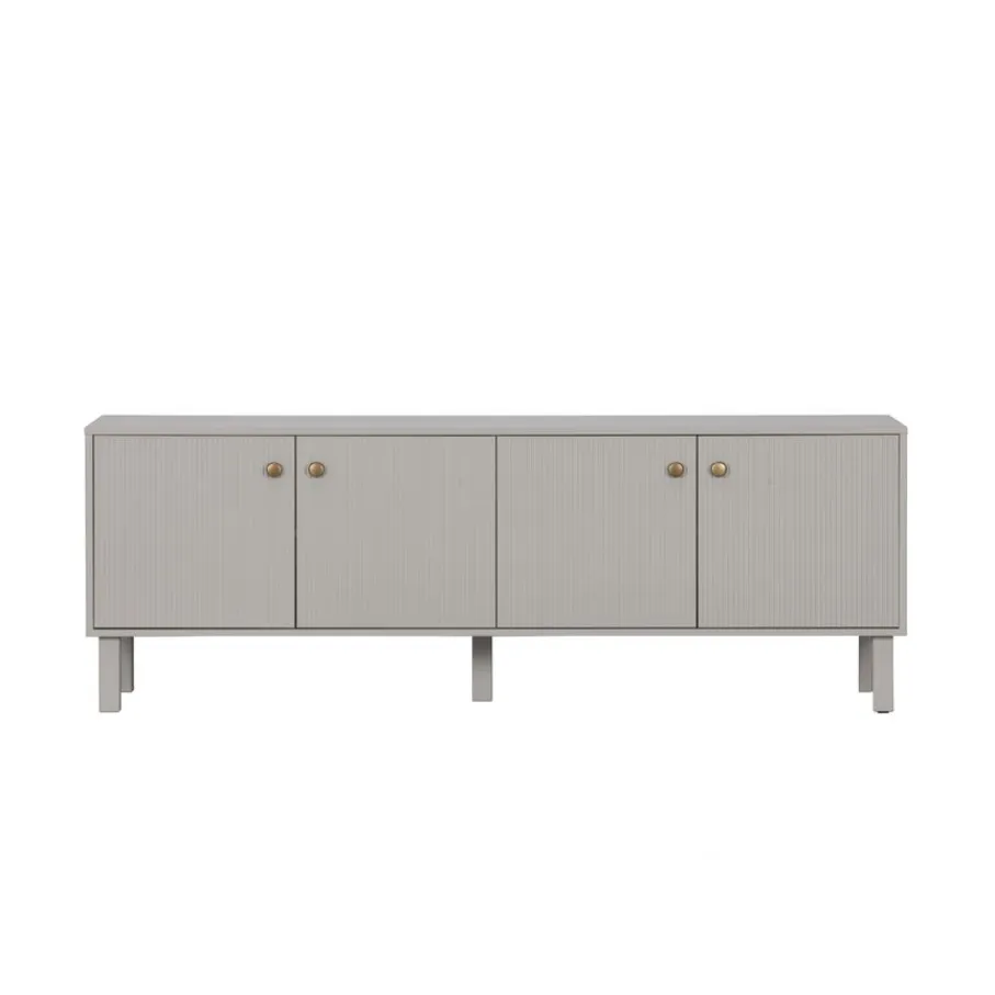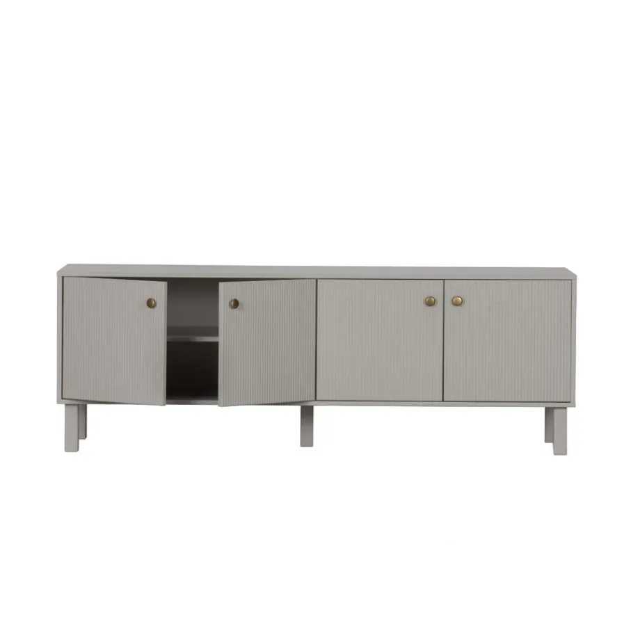 - Geef je woonkamer direct een stijlvolle boost met dit moderne tv-meubel, dankzij de chique goudkleurige knoppen en het trendy verticale patroon.