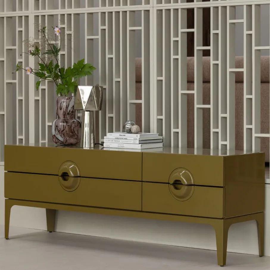 - Dit tv-meubel biedt geen open vakken, dus voor je mooiste woonaccessoires is een plekje bovenop perfect om ze te laten stralen.