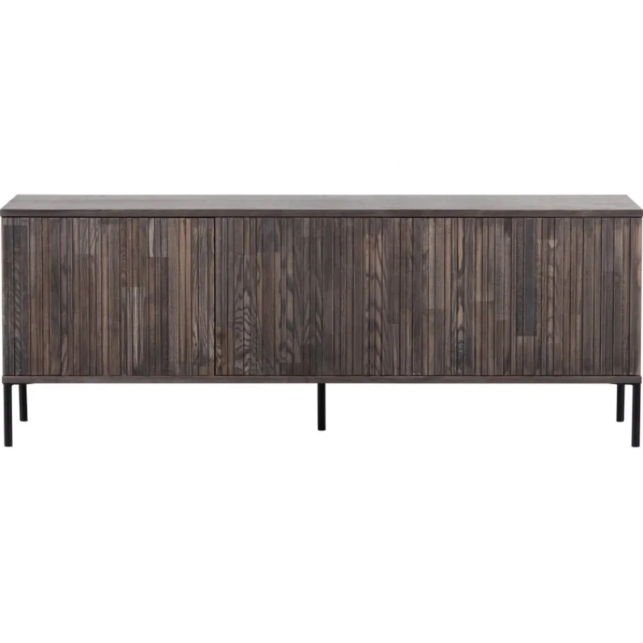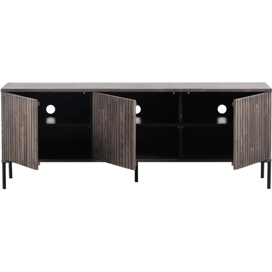 - Geef je woonkamer direct een stijlvolle make-over met dit moderne tv-meubel, compleet met een elegant plissé patroon op de massief essen houten deuren.