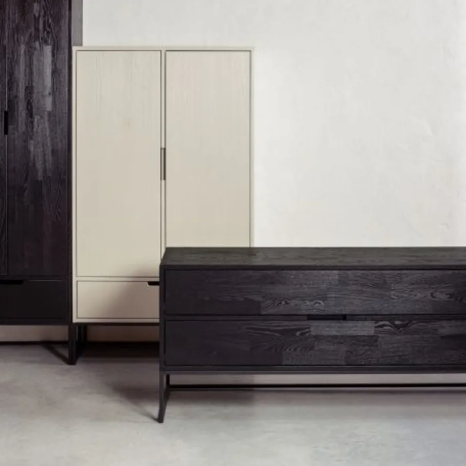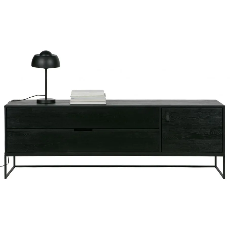Dit elegante tv-meubel Silas heeft een robuuste en toch stijlvolle look. Deze Silas kast komt uit de Exclusive collectie van woonmerk WOOOD. Het heeft een body van geborsteld massief essen (FSC-gecertificeerd) dat is afgelakt in de kleur blacknight. Het onderstel is een open en hoog frame gemaakt van zwart metaal. Het frame geeft een luchtige look en is bovendien praktisch met schoonmaken.
