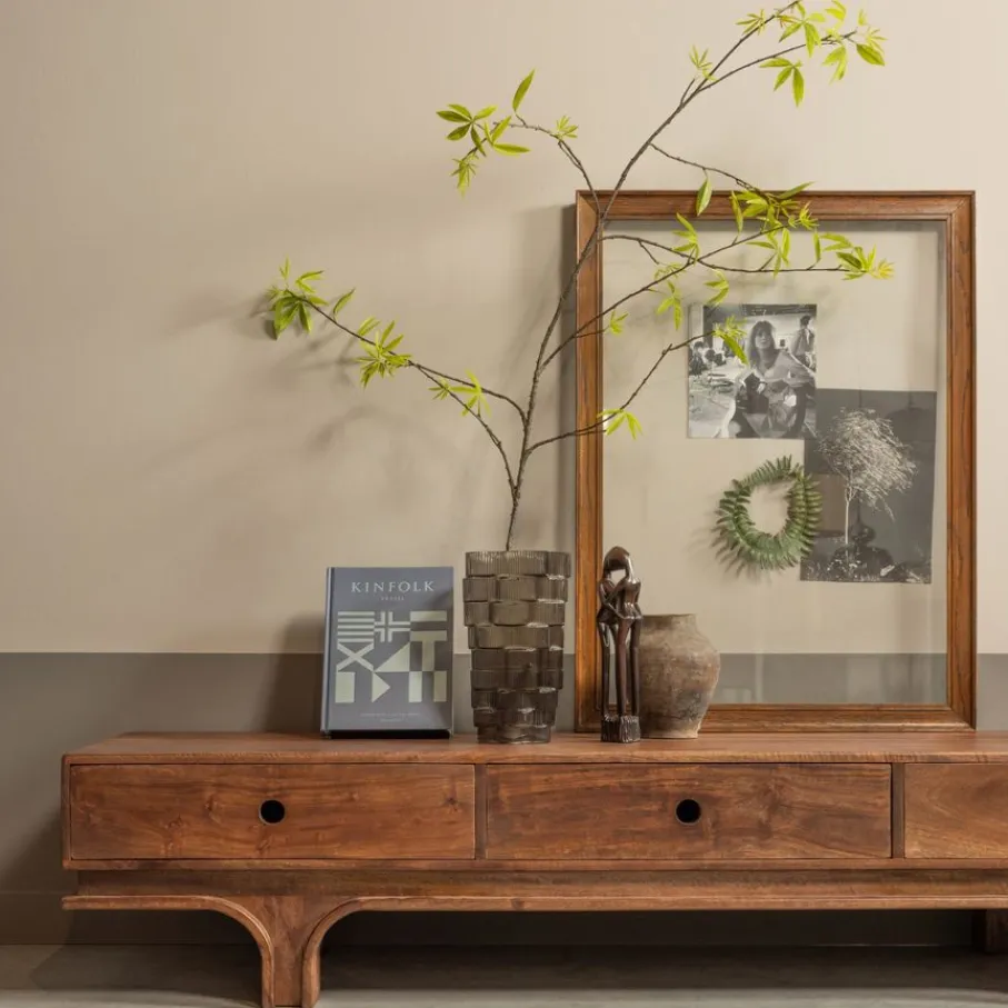 - Geniet van de unieke, natuurlijke schoonheid van mangohout, met zijn karakteristieke nerven en knoesten die elk meubel een eigen verhaal geven.