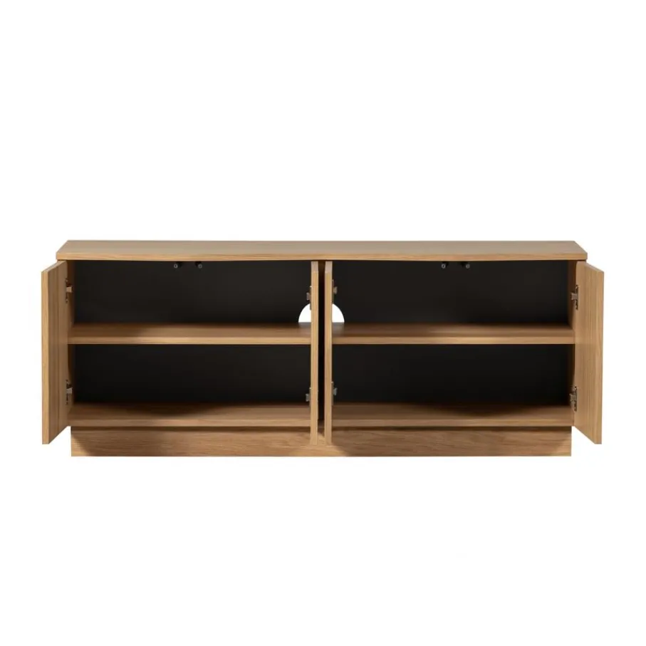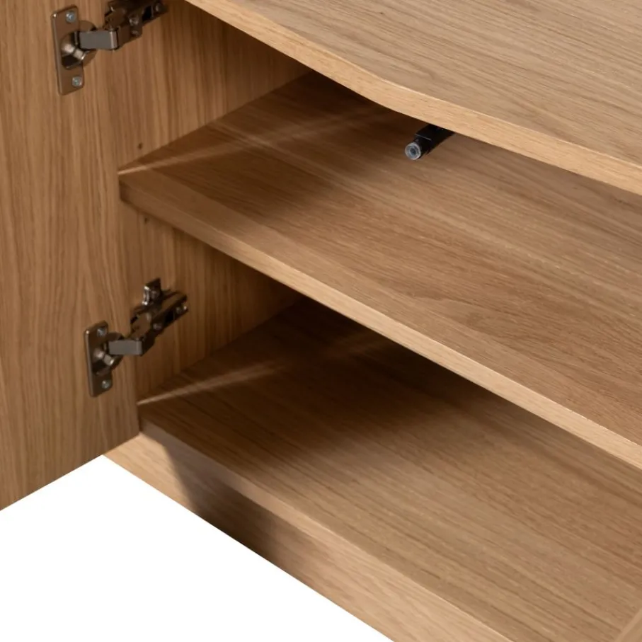 Het tv-meubel heeft ruime opbergvakken, ideaal voor het organiseren van je media-apparatuur etcetera. De greeploze deuren zijn voorzien van een luxueus push-to-open systeem. De kast heeft twee dubbeldeurs vakken met een plank erin. Hierdoor ontstaan 4 vakken met een afmeting van 66 cm breed en 19 cm hoog. Het draaggewicht per plank is 10 kg, mits gelijk verdeeld.