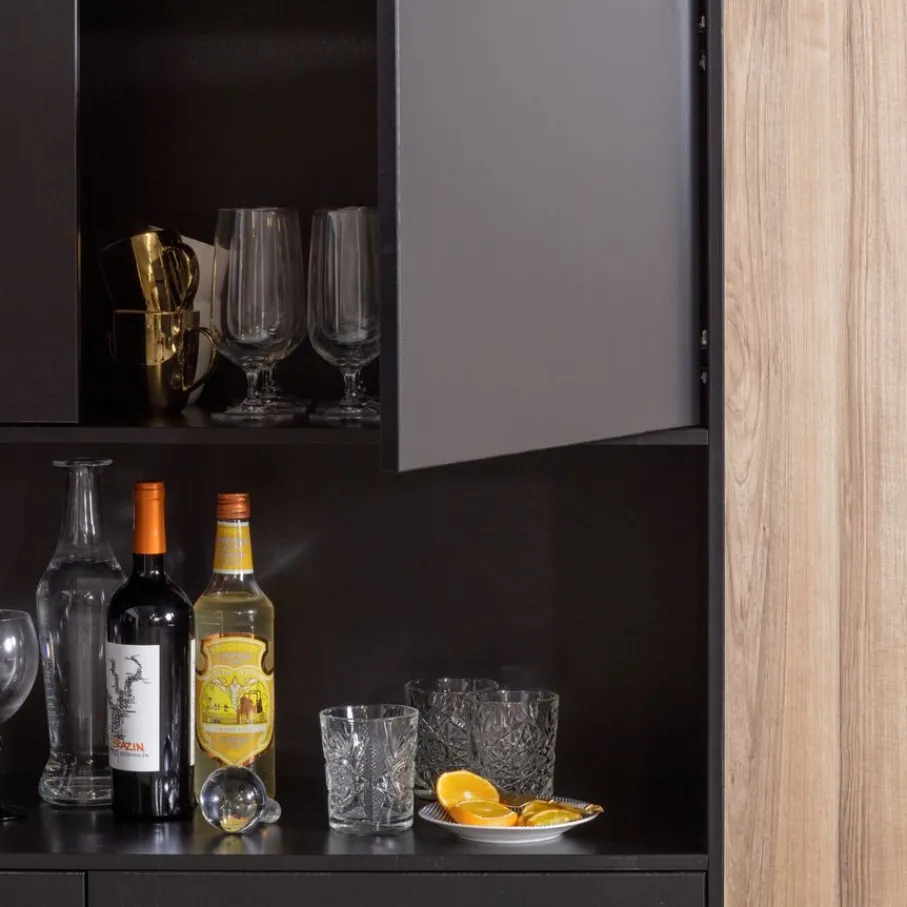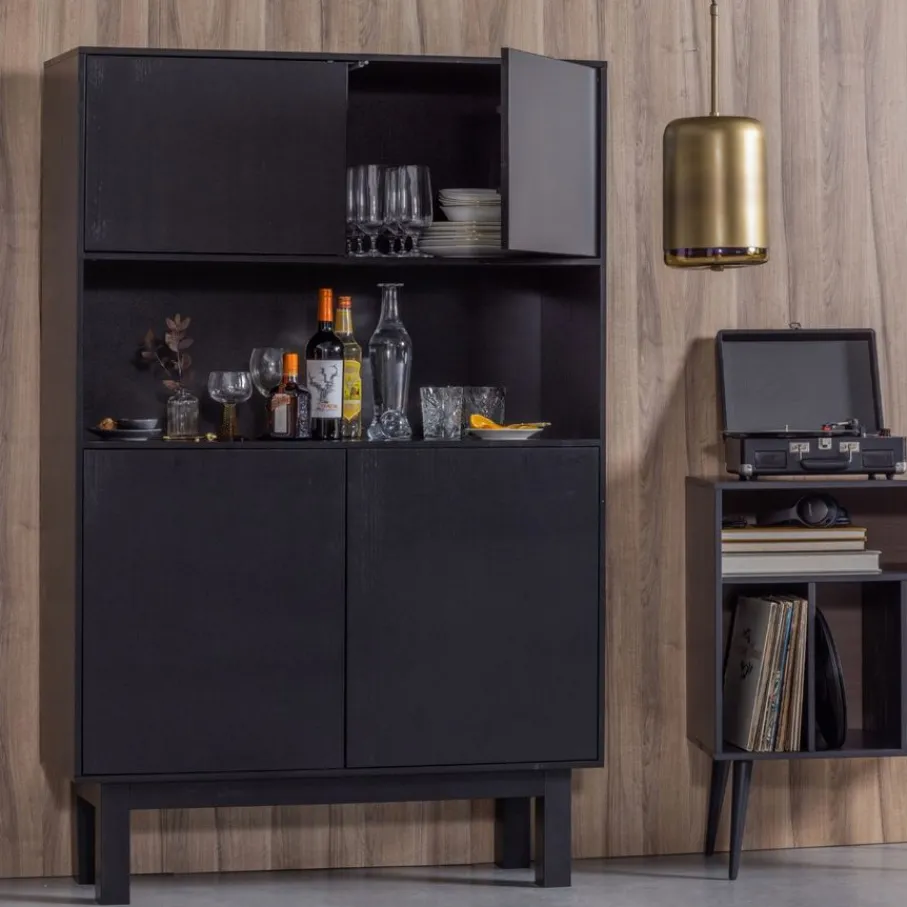 - Geef je interieur een stijlvolle boost met deze tijdloze, diepzwarte wandkast die jouw woonkamer direct een moderne en gezellige uitstraling geeft.