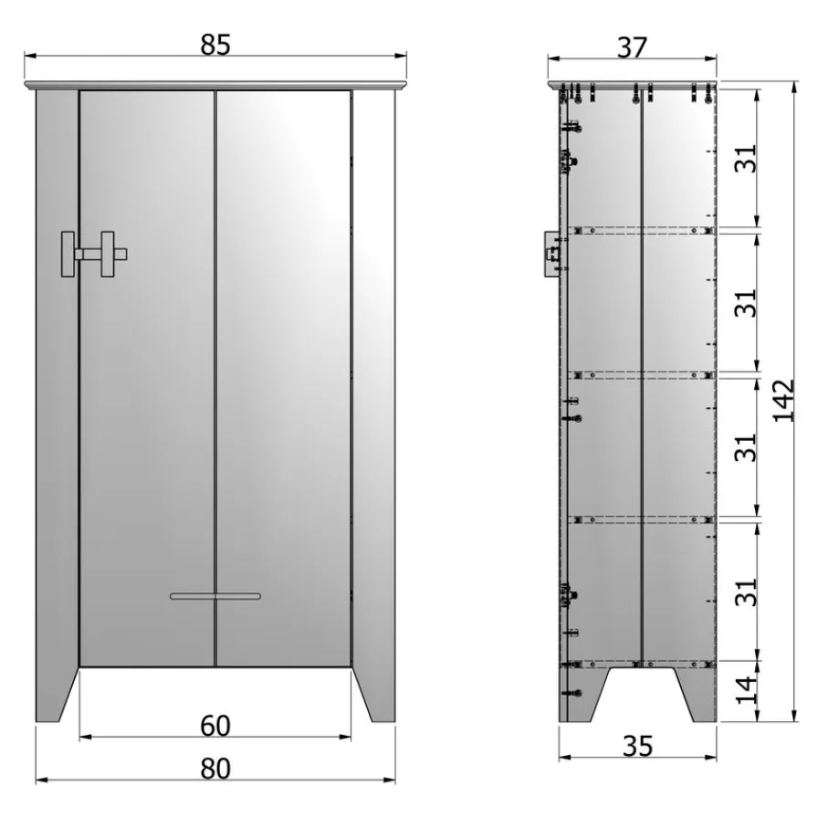 - Afmeting 85×38 cm en 142 cm hoog