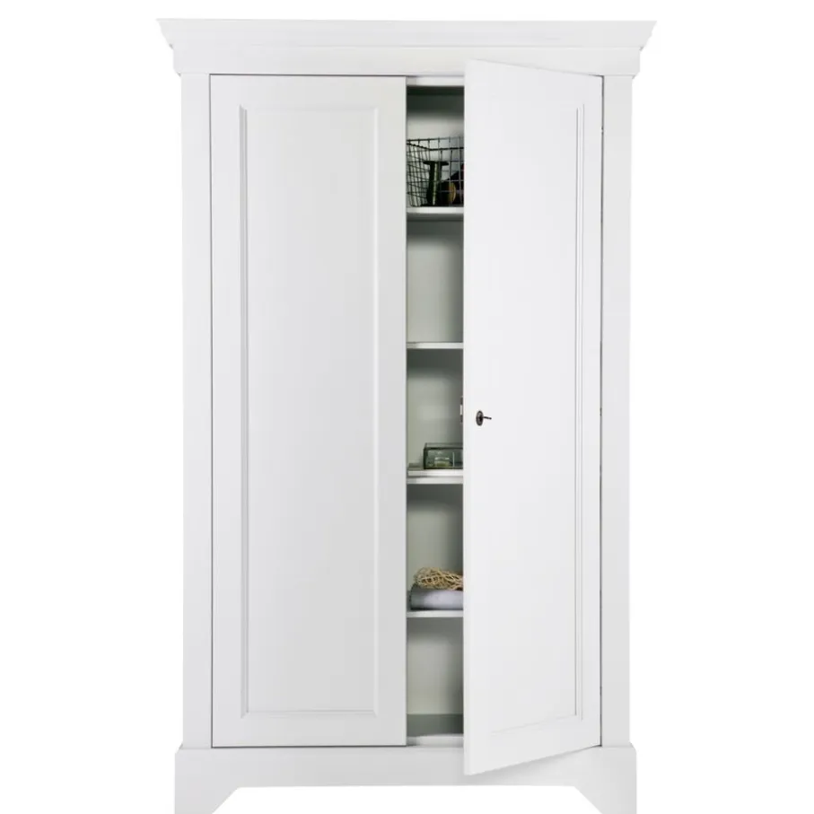 - Geef je huis direct een dosis sfeer en karakter met de brocante charme van wandkast Isabel, compleet met authentieke details zoals de sierlijke kuif en het klassieke slot met sleutel.