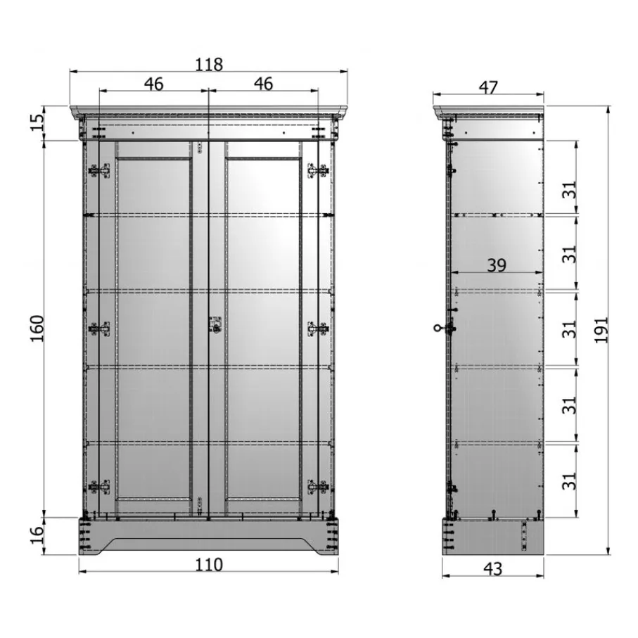 - Voor spullen die je wilt ophangen of kleine losse items heeft wandkast Isabel geen aparte hangroede of lades, maar de ruime legplanken zijn perfect voor al je gevouwen kleding en opbergdozen.