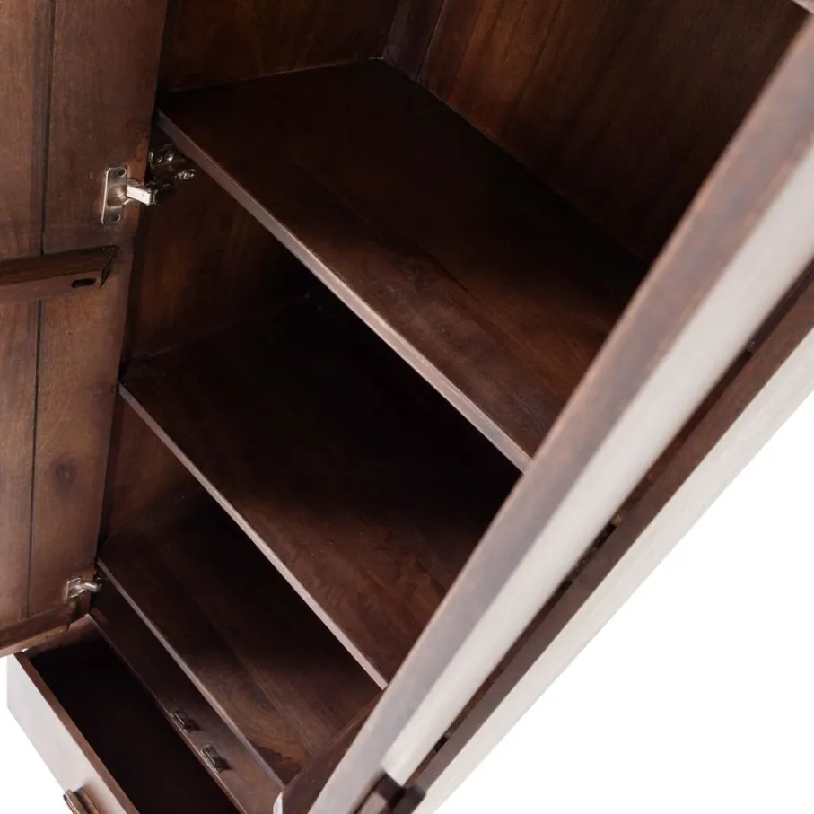 - Geef je interieur een luxueuze touch met het prachtige donkerbruine mangohout en de verfijnde gelakte afwerking, die direct warmte en sfeer toevoegen.