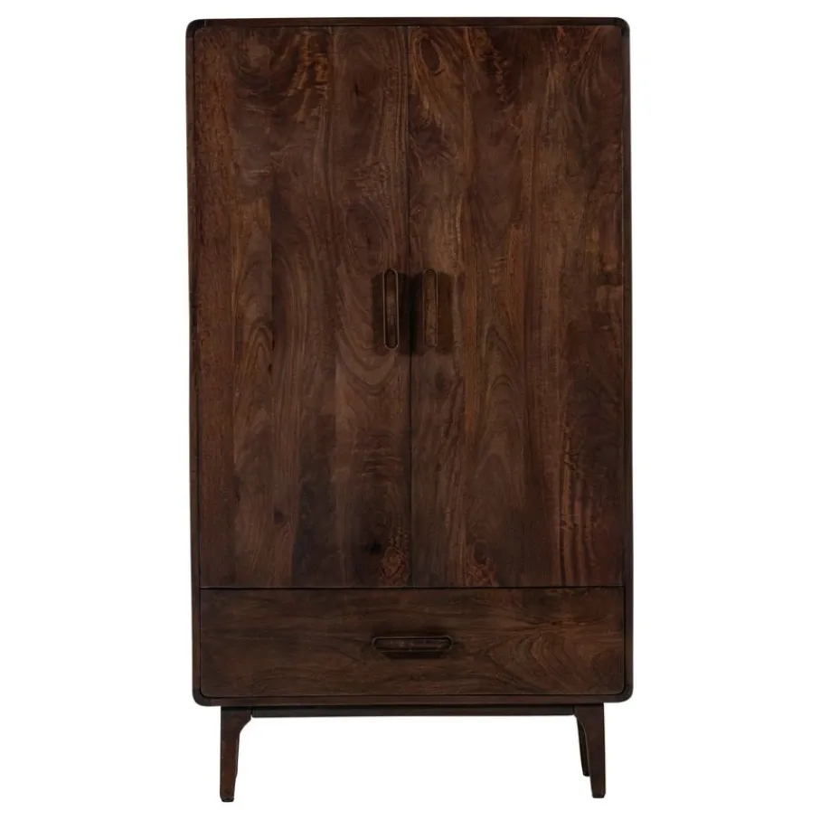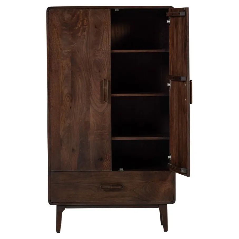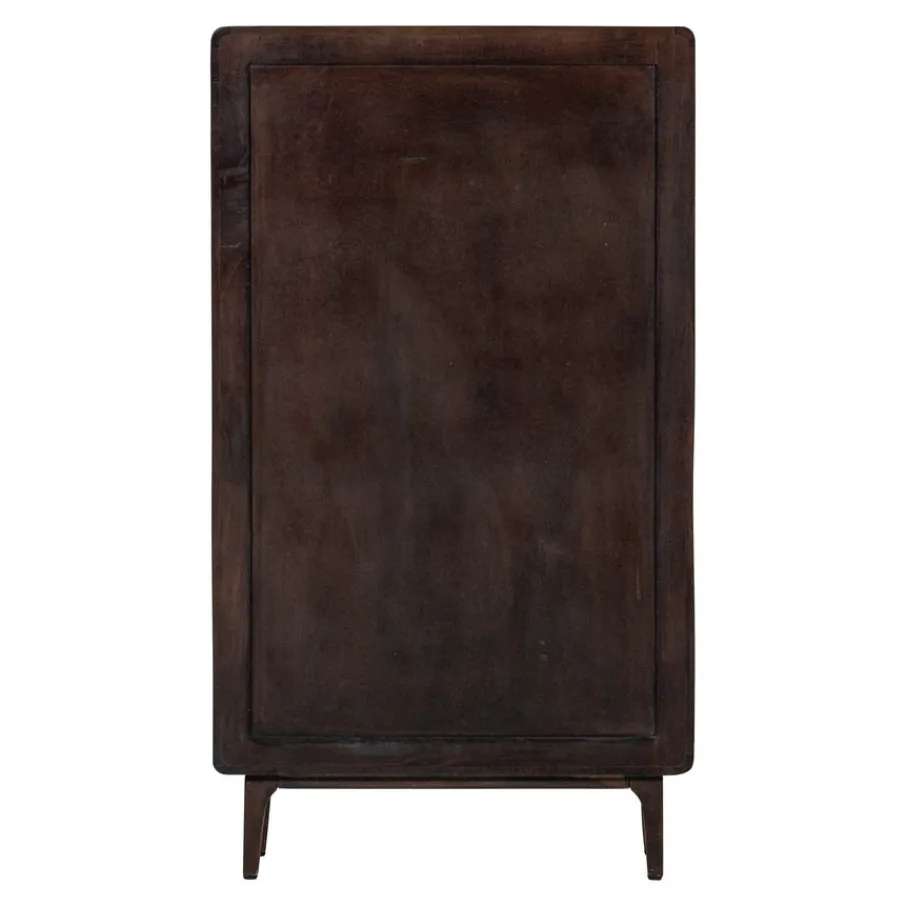 Wandkast Liya van WOOOD brengt met zijn design look een elegante sfeer in elk interieur. De afgeronde hoeken geven het opbergmeubel een vriendelijke uitstraling, waardoor het een toegankelijke toevoeging is voor diverse interieurstijlen. Het donkerbruine mangohout heeft een zichtbare nerfstructuur die elk exemplaar uniek maakt en karakter toevoegt aan de woon-, slaap- of werkkamer. Met deze eigenschappen zorgt wandkast Liya voor stijl en sfeer in elke ruimte.