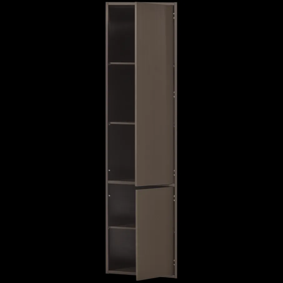 Wandkast Meggy van woonmerk WOOOD is een slank opbergmeubel met een stijlvolle uitstraling. Deze kast biedt zowel een praktische als decoratieve opbergoplossing. Meggy heeft twee deuren die zorgen dat spullen netjes uit het zicht blijven, terwijl het strakke design perfect past in een modern interieur. Het is gemaakt van FSC-gecertificeerd grenenhout en heeft een afwerking in een moderne midden bruine tint. Extra handig: de deuren kunnen zowel links- als rechtsdraaiend worden gemonteerd.