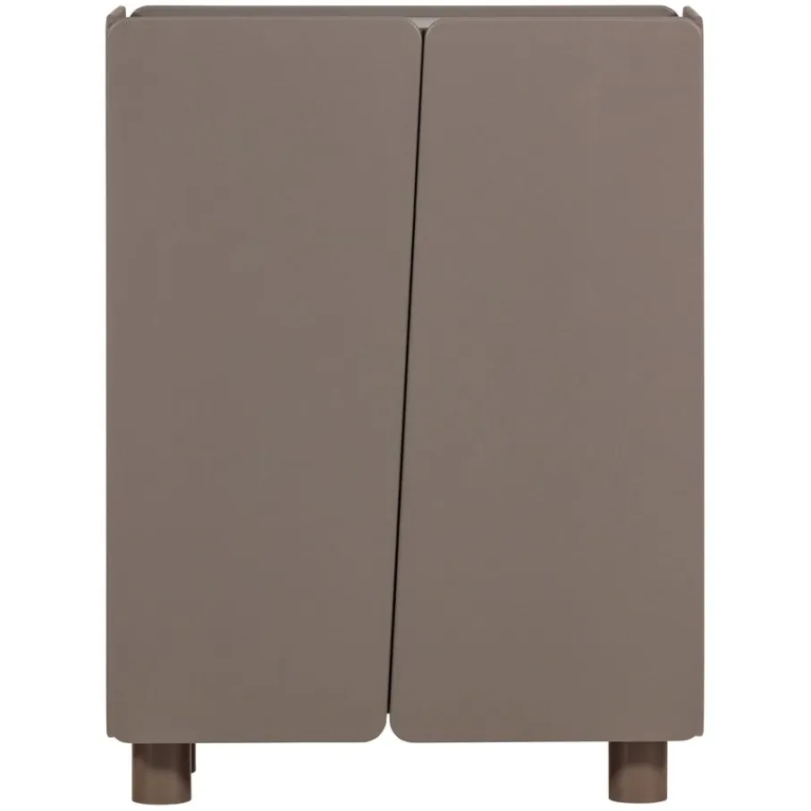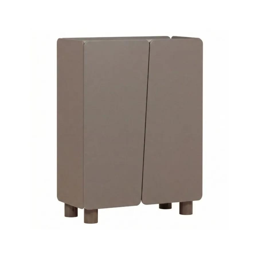 Wandkast Root van WOOOD is een opbergkast met een opvallend en speels karakter. Dit item kenmerkt zich door de afgeronde hoeken en de diagonale lijn die de twee deuren van elkaar scheidt. De kast is uitgevoerd in een truffel bruine tint en staat op robuuste, cilindervormige poten. Dankzij het ontwerp en de speelse hoogte van 135 cm is wandkast Root een sfeervolle toevoeging in de woonkamer, hal of slaapkamer.