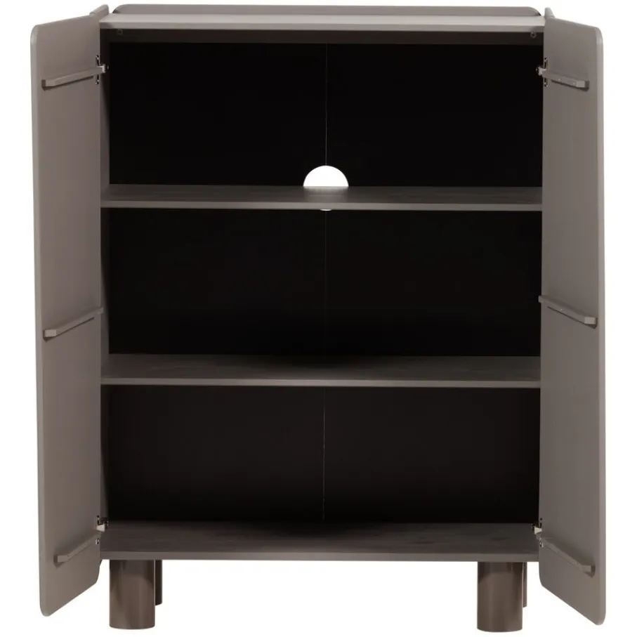 Achter de twee deuren bevinden zich twee legplanken die de binnenruimte verdelen in drie ruime opbergvakken. Dit biedt voldoende plaats voor het netjes opbergen van diverse spullen. De achterwand is voorzien van een kabeldoorvoer, wat de kast ook geschikt maakt voor het plaatsen van audioapparatuur.