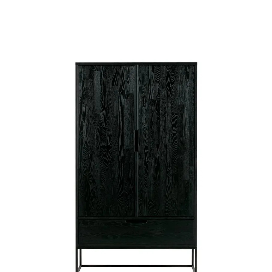 Wandkast Silas van woonmerk WOOOD heeft een moderne, elegante look. De kast biedt veel plek om je spullen in op te bergen en door de speelse hoogte van 149 cm, is het leuk om de kast te decoreren met mooie vazen of een lamp. Silas is gemaakt van geborsteld massief essenhout, dat is afgelakt in de kleur blacknight. Het zwart metalen frame heeft een luchtige look en is bovendien praktisch met schoonmaken.