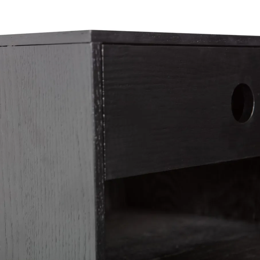 Het nachtkastje heeft een lade met eronder een open vak. Beide zijn ze 9 cm hoog. De lade en het vak zijn beide te belasten met maximaal 5 kg.
