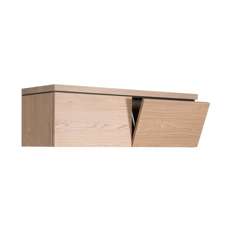 TV-Meubel Vista is niet alleen een lust voor het oog, maar ook praktisch en functioneel. Het biedt plek voor je tv en er is ook een opening in het blad voor kabeldoorvoer. Verder zijn er twee dichte vakken die zorgen voor opbergruimte. Ze worden afgesloten met klepdeuren zonder grepen. Het sluitmechanisme combineert comfort en gemak, dankzij het soft close en push-to-open systeem.